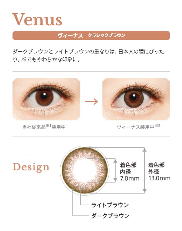 ヴィーナス クラシックブラウン どんなシーンにも対応できる澄んだライトブラウン